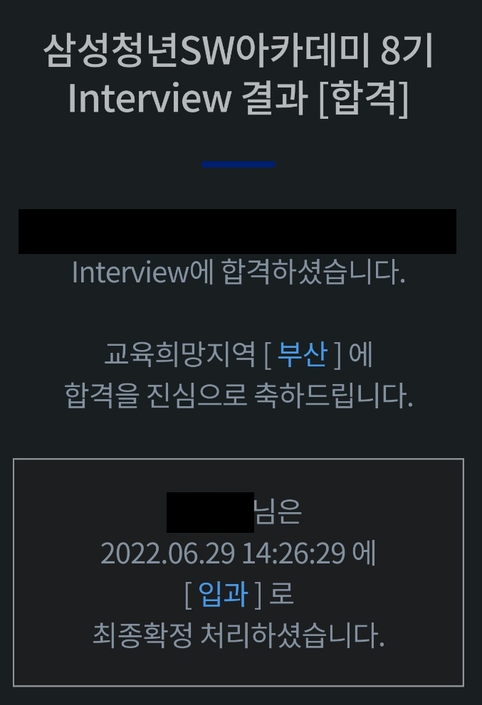 나는 SSAFY의 6기와 7기에 지원했지만, 두 번 모두 서류는 통과하면서도 면접에서 탈락하였다. 이러한 실패에도 불구하고 8기에 다시 도전하였고, 결국 세 번의 시도 끝에 합격하였다.